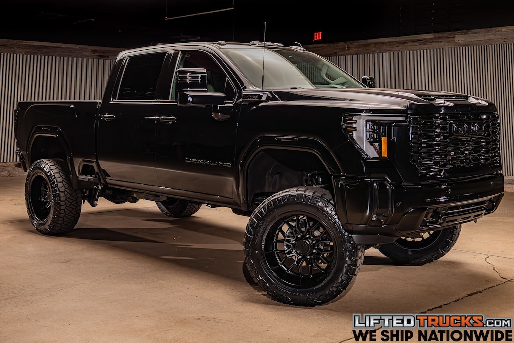 This Lifted 2025 GMC Sierra 3500HD Denali Reserve features a 5-inch BDS Non Torsion Bar Drop Lift Kit, Fox 2.0 Front & Rear Shocks, Four Wheel Alignment, 22-inch Arena A117 Violator Full Satin Black Wheels, 37X13.50R22 Nitto Ridge Grappler Tires, Custom Paint Match, and Smoked Tail Lamps. Installed by our Lift Tech, Daniel G. *Modifications are optional and are not included in the advertised price.*