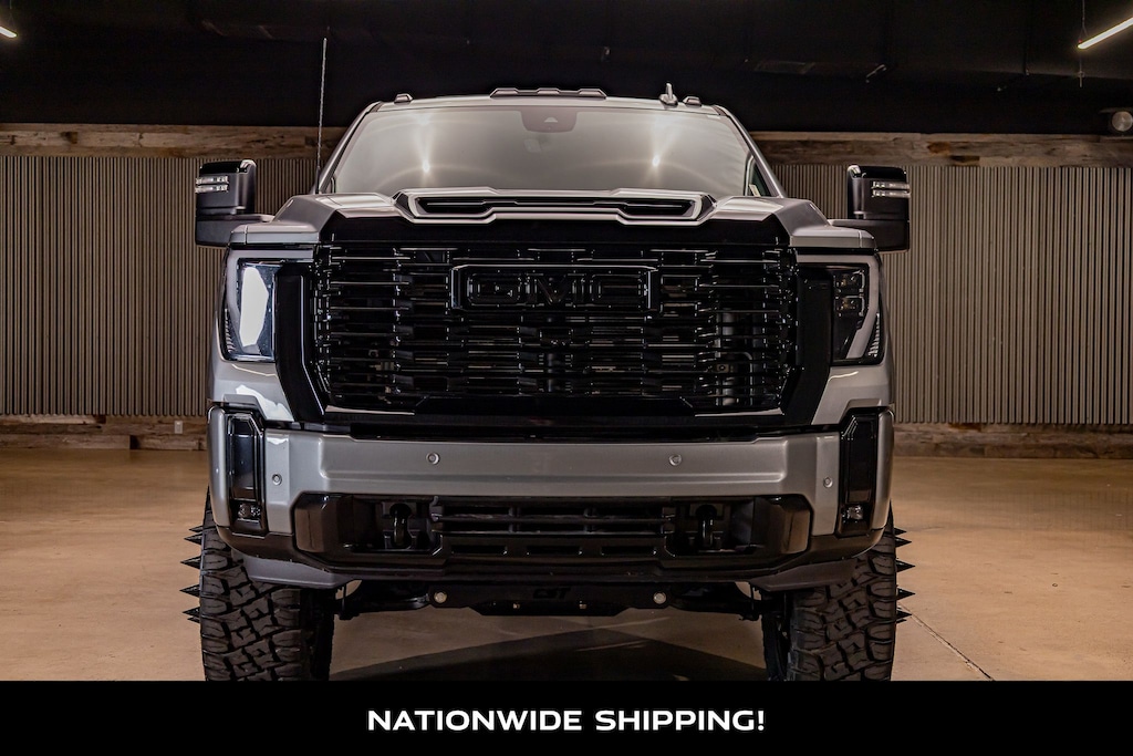 Commanding attention and Diesel powered, our 2025 GMC Sierra 3500HD Denali Ultimate Crew Cab 4X4 Dually is at the pinnacle of Pro Grade luxury and capability in Sterling Metallic! Motivated by a TurboCharged 6.6 Liter DuraMax Diesel V8 delivering 470hp and 975lb-ft of torque to a 10 Speed Allison Automatic transmission. This Four Wheel Drive truck also masters the miles with an off-road suspension, Digital Variable Steering, and a dominating design. Exterior highlights include a power sunroof, power assist steps, LED lighting, 4-inch CST Non Torsion Bar Drop Lift Kit w/Fox 2.0 Front & Rear Shocks and Four Wheel Alignment, 24-inch JTX Forged "Chisel" Full Gloss Black Dually Package Wheels, LT315/50R24 Toyo Open Country R/T Pro Tires, Custom Paint to Fencer Flares, Custom CHrome Delete To All Chrome Accents, a spray-on bedliner, and a MultiPro tailgate with a built-in Kicker sound system.